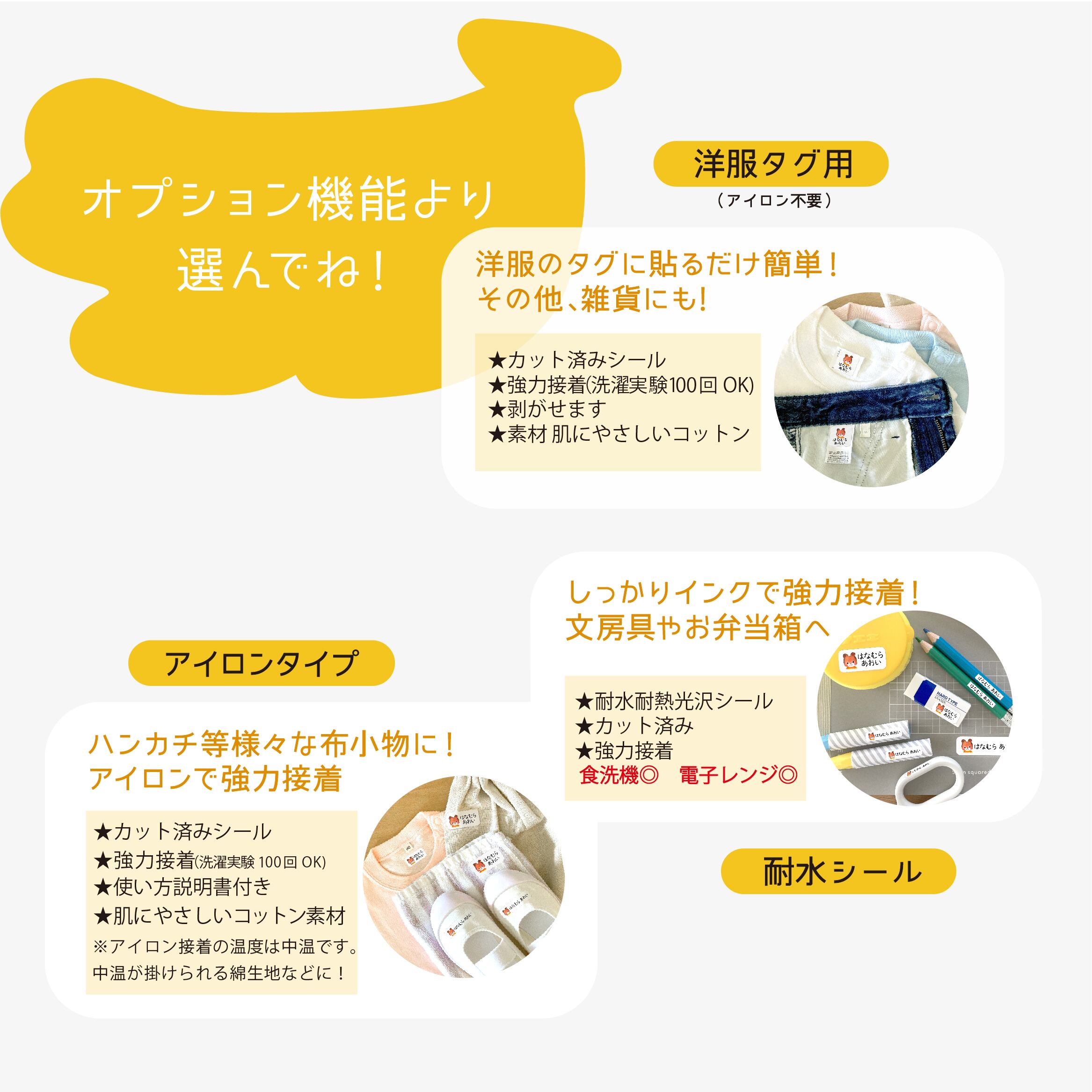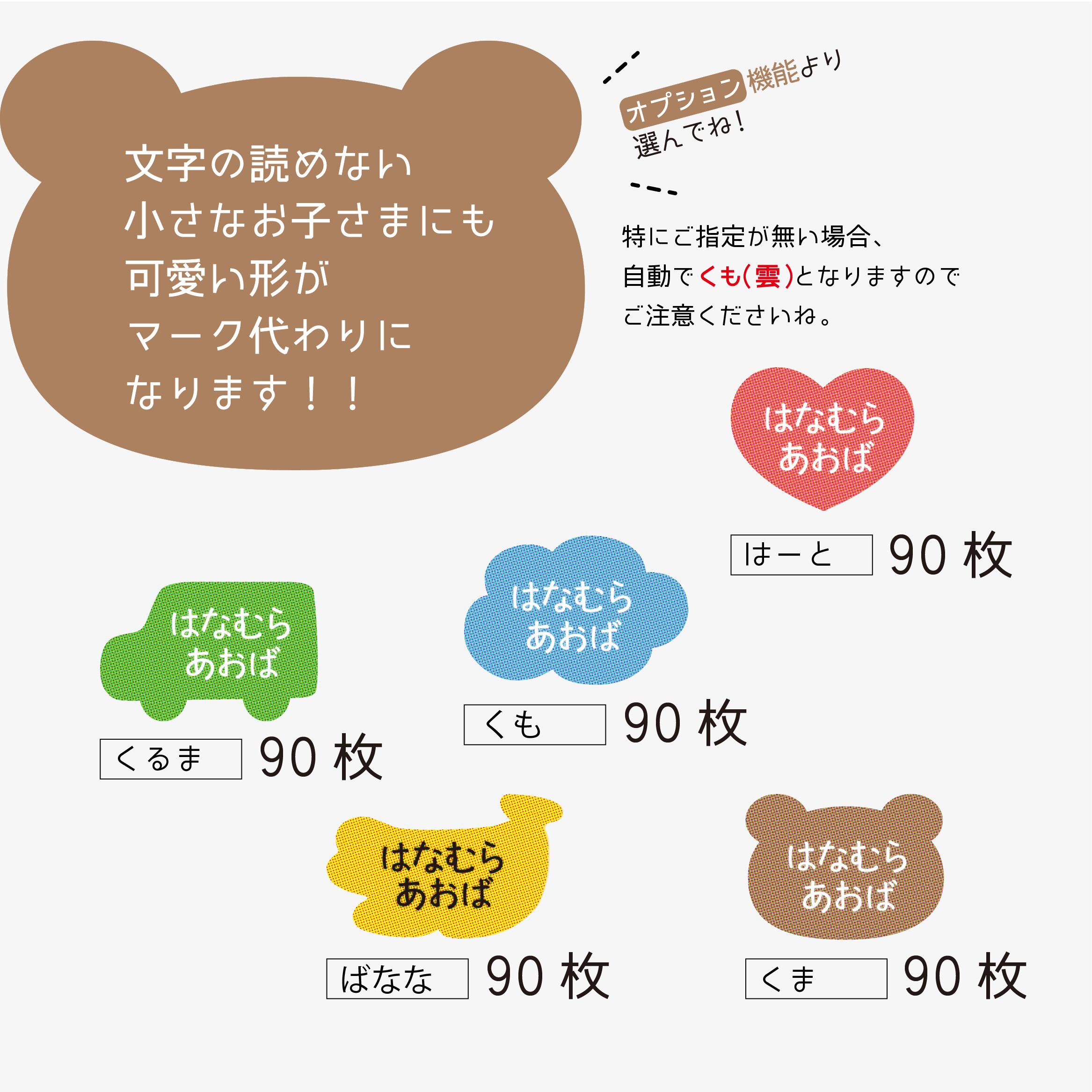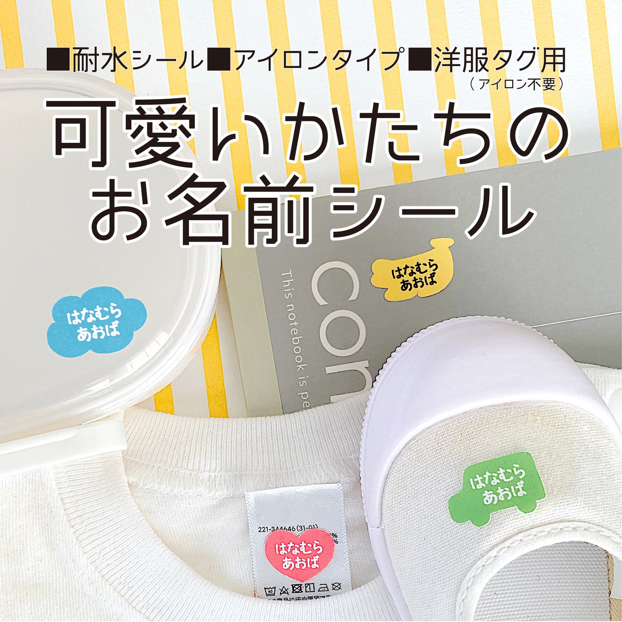 可愛いかたちのお名前シール (耐水・洋服タグ・アイロン)