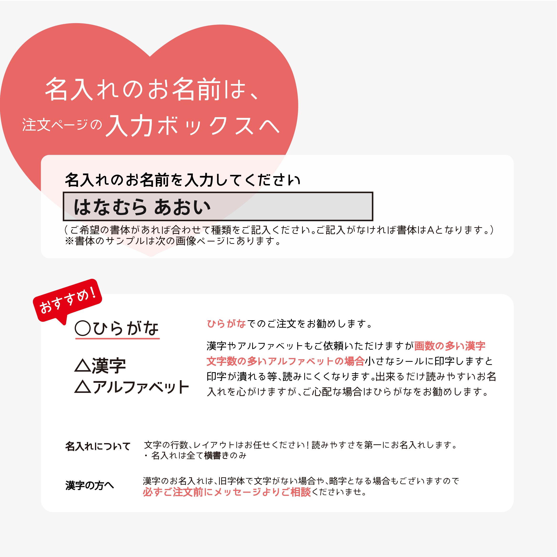 【ご注文の流れ】全てのオプション機能を選択し、名入れのお名前入力欄を入力下さい。