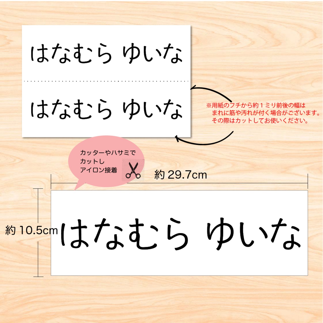 商品の実寸はヨコ29.7cm×タテ10.5cmです。(×2枚のお名入れ)