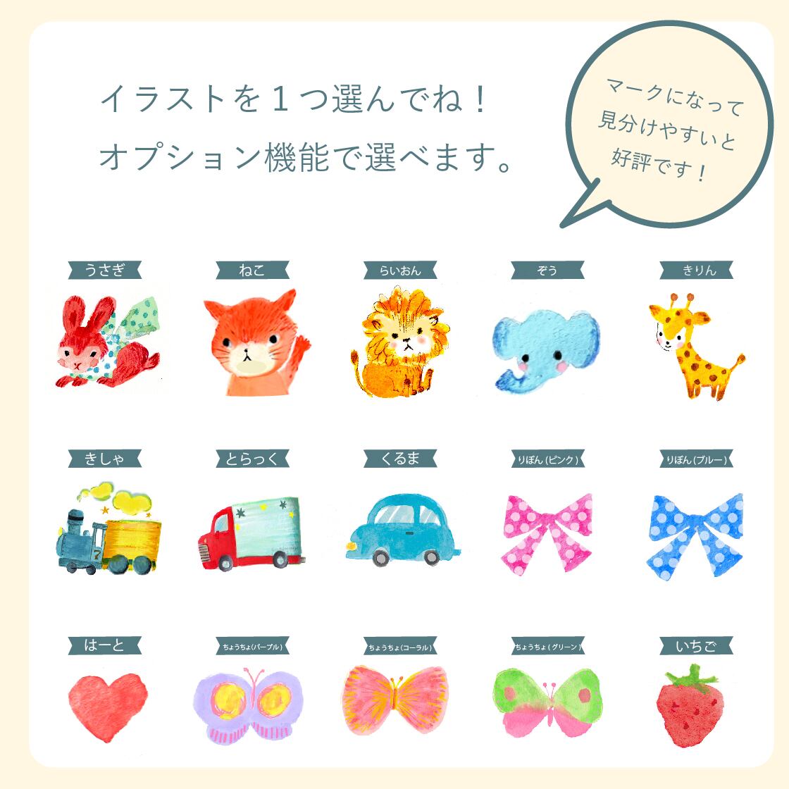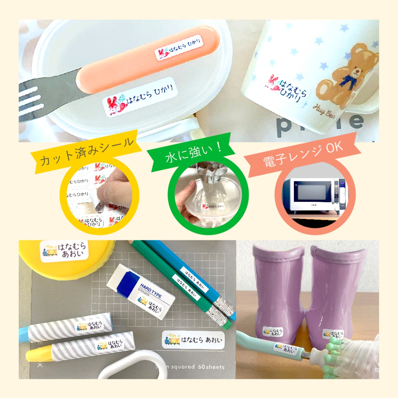 絵本のようなやさしい絵柄でお名前シールを作りました。