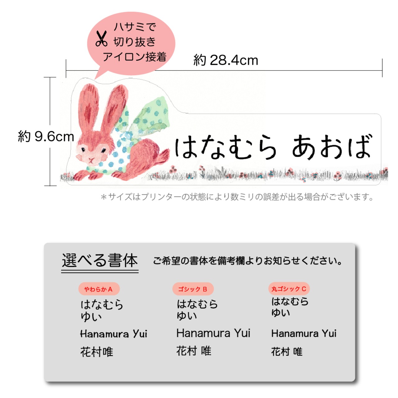 お昼寝布団用 とっても大きなお名前シール(アイロンタイプ)2枚分/うさぎ