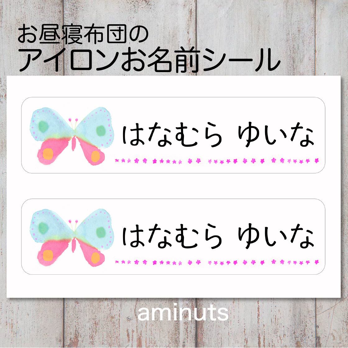 お昼寝布団用 とっても大きなお名前シール(アイロンタイプ)2枚分/ちょうちょ ブルー×ピンク