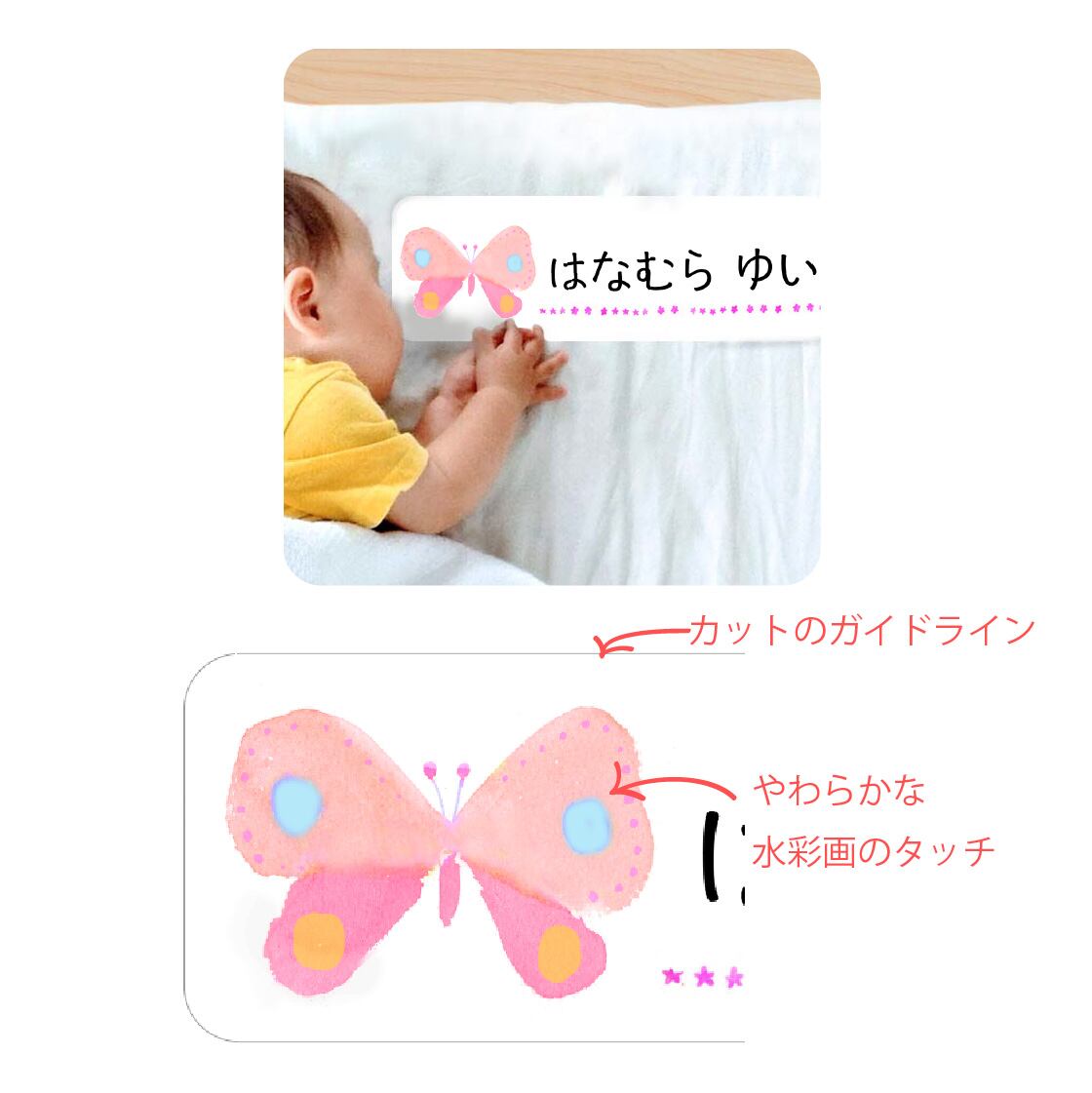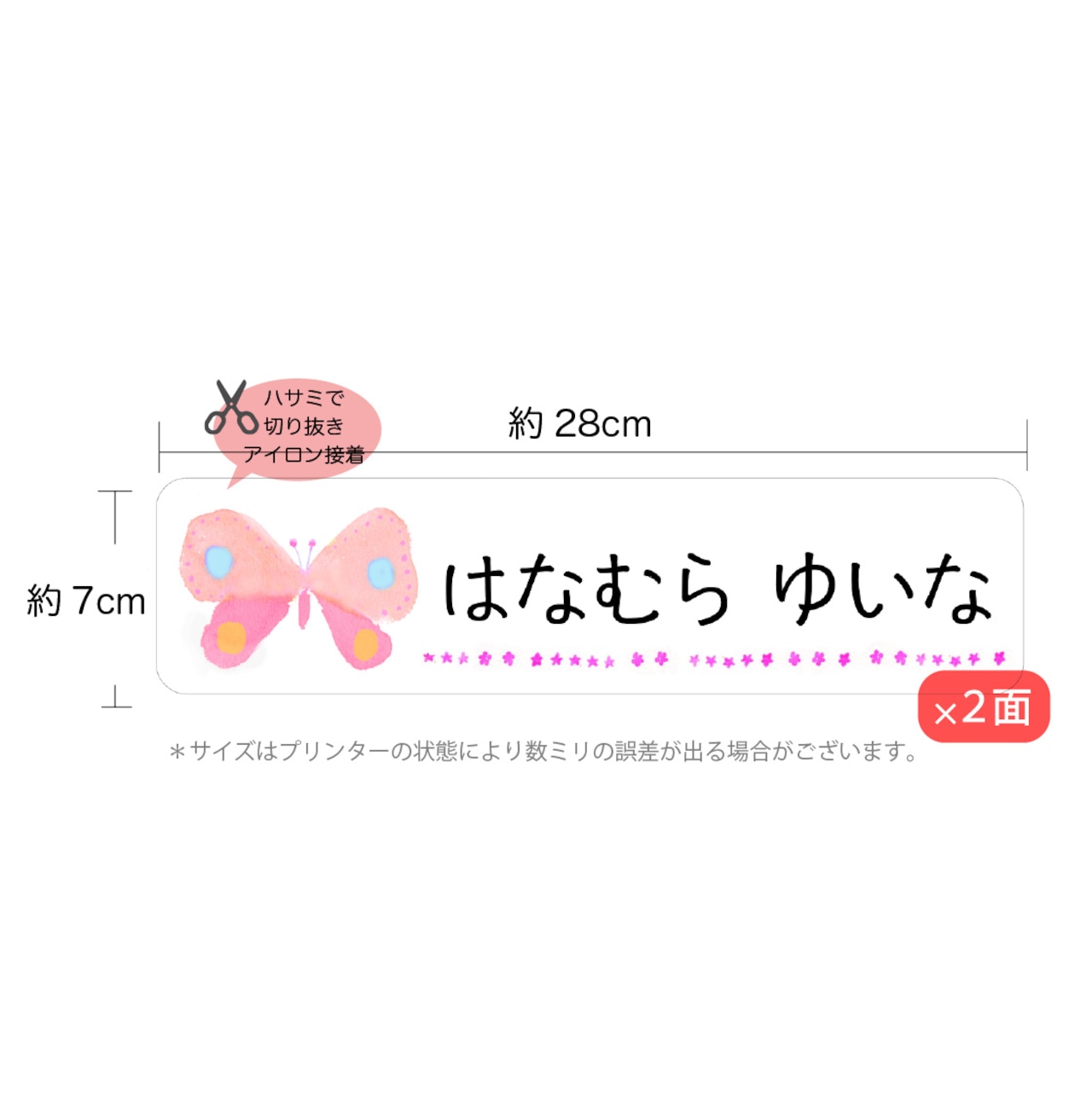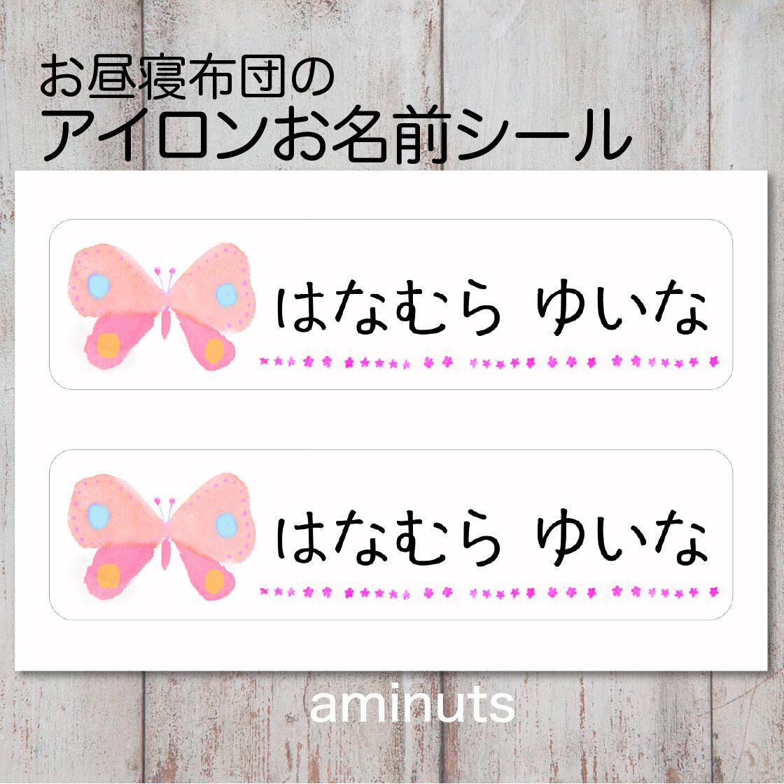お昼寝布団用 とっても大きなお名前シール(アイロンタイプ)2枚分/ちょうちょ ピンク×ピンク