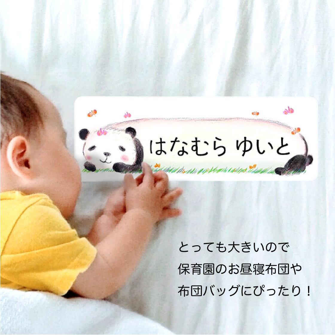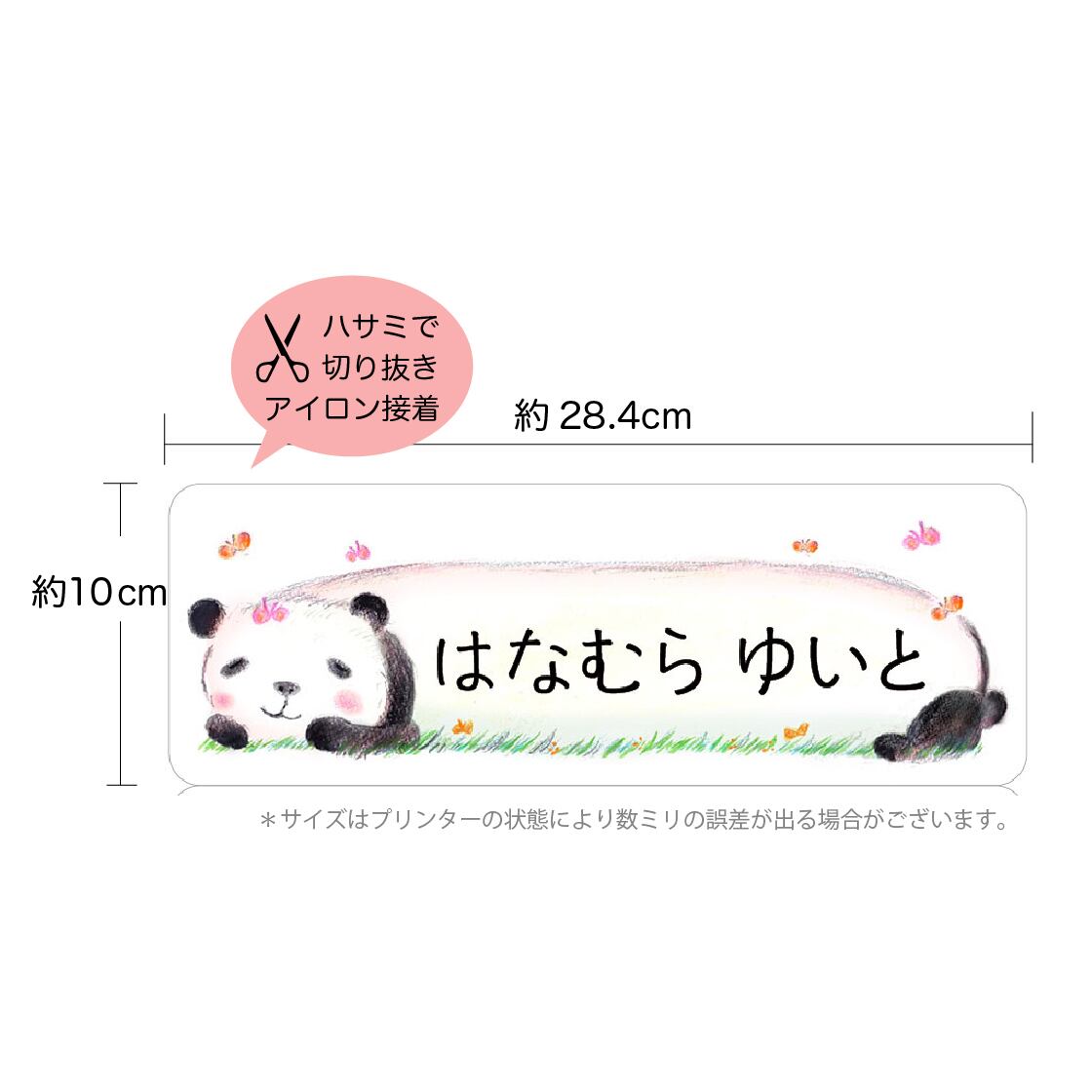 お昼寝布団用 とっても大きなお名前シール(アイロンタイプ)2枚分/パンダ