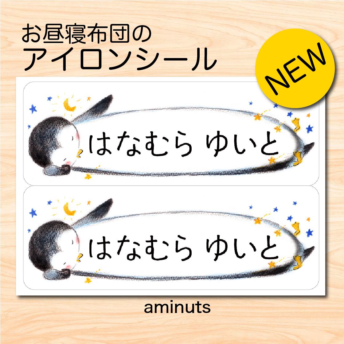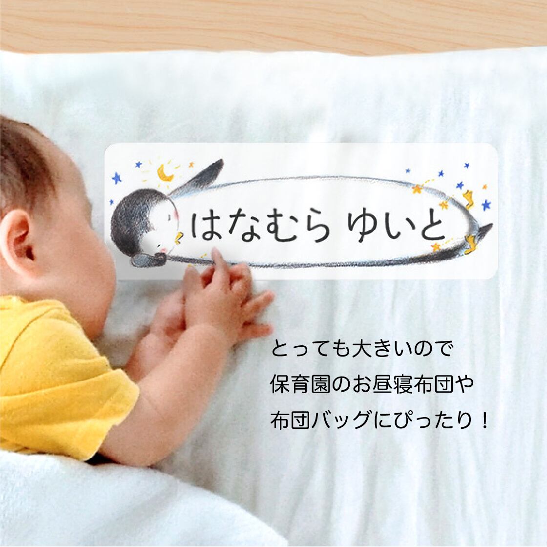 お昼寝布団用 とっても大きなお名前シール(アイロンタイプ)2枚分/ペンギン