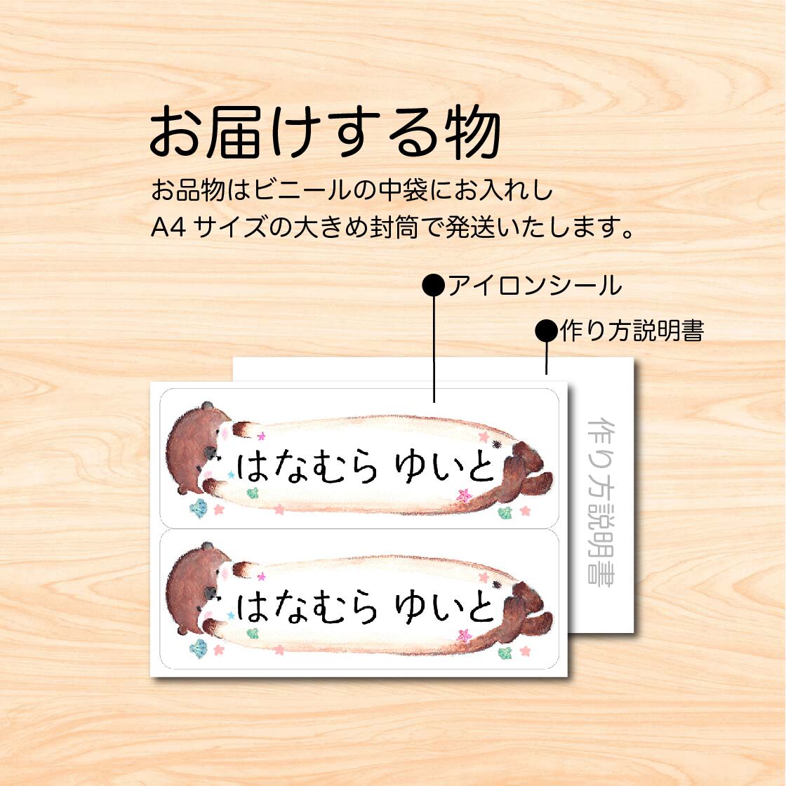 A4サイズ・コットン生地アイロン接着シール(薄手の生地ですが張りがあります。)・説明書(作り方動画案内付き)