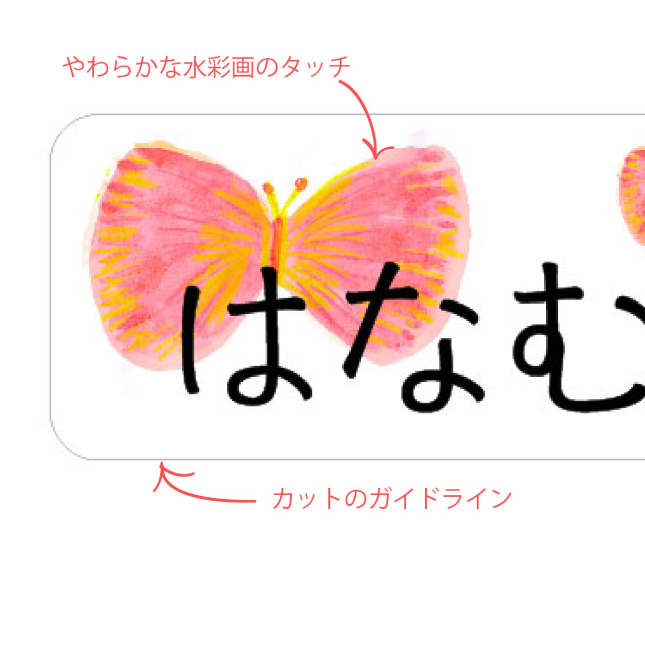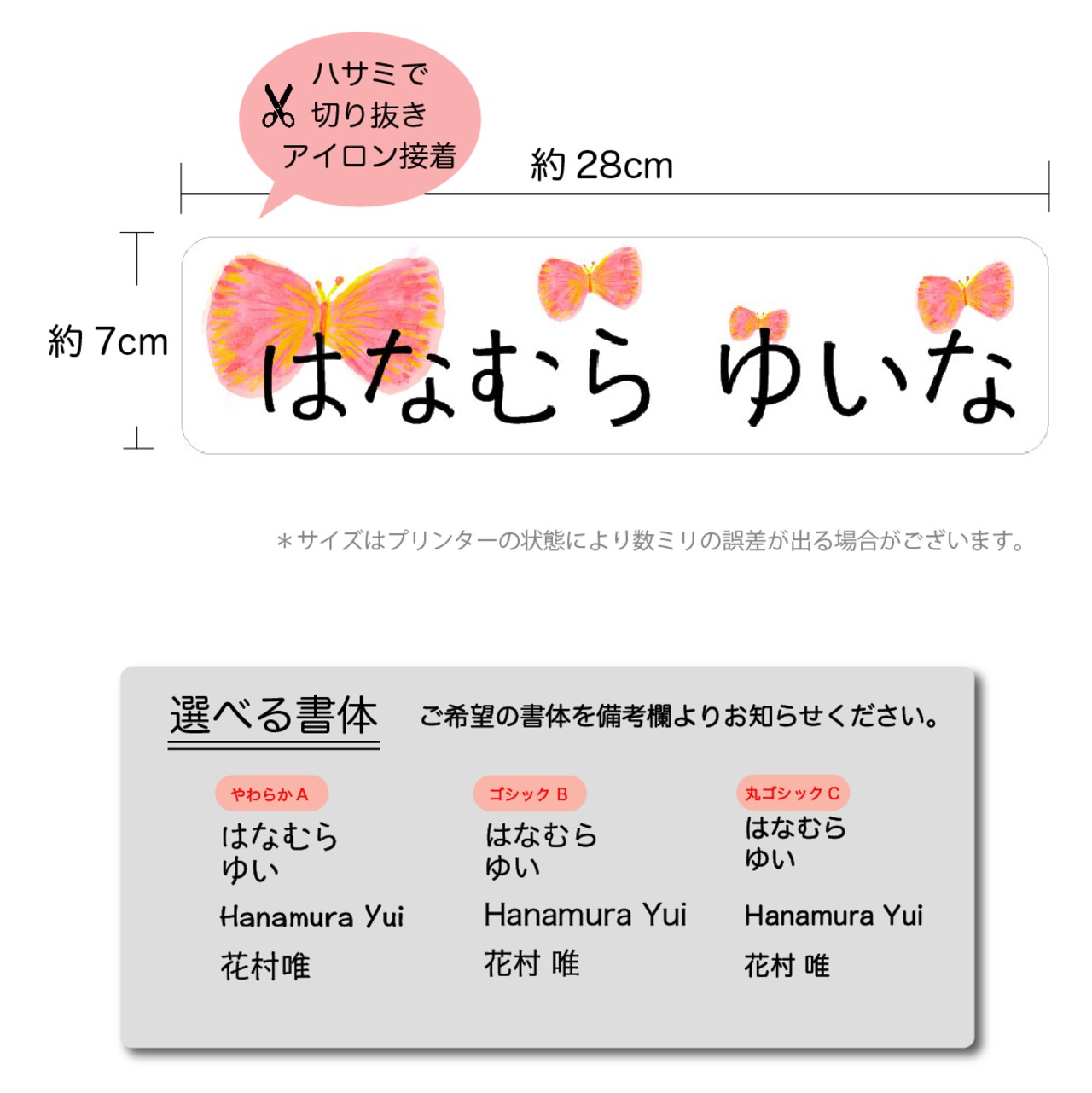 お昼寝布団用 とっても大きなお名前シール(アイロンタイプ)2枚分/ちょうちょcoral