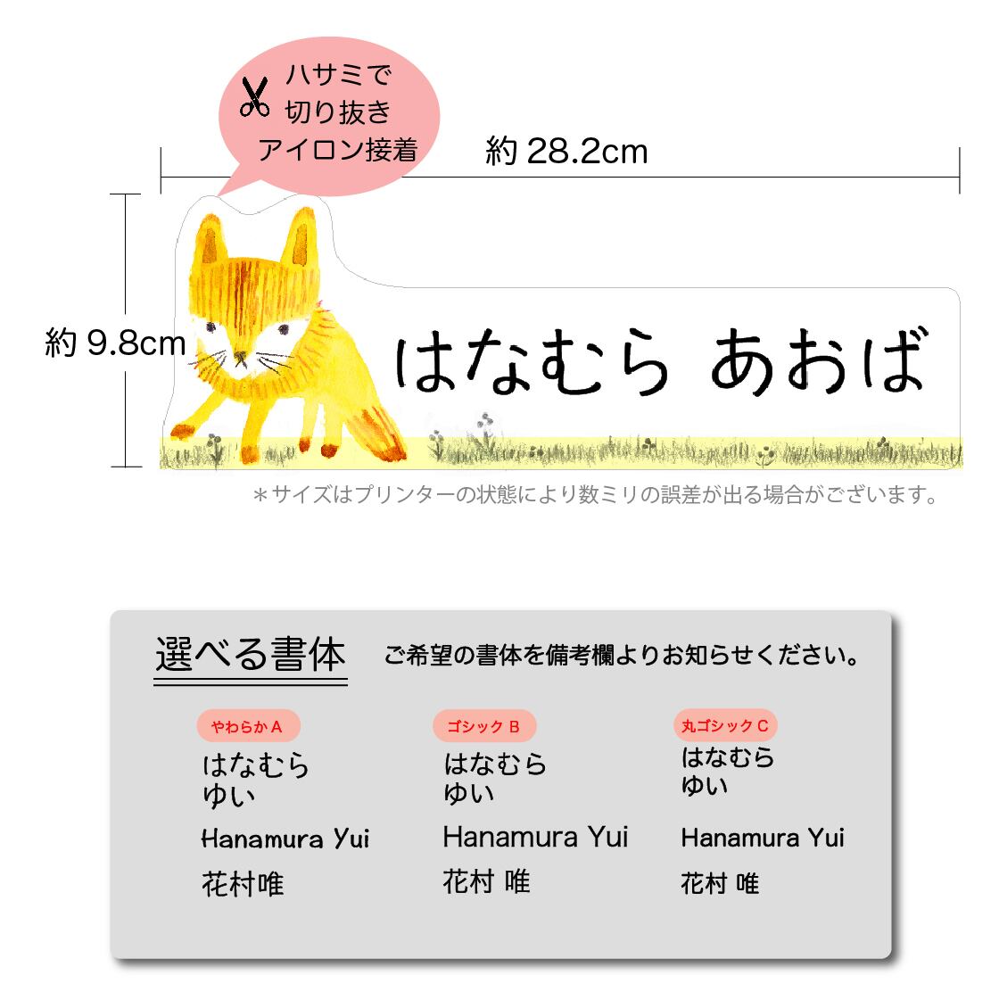 お昼寝布団用 とっても大きなお名前シール(アイロンタイプ)2枚分/きつね
