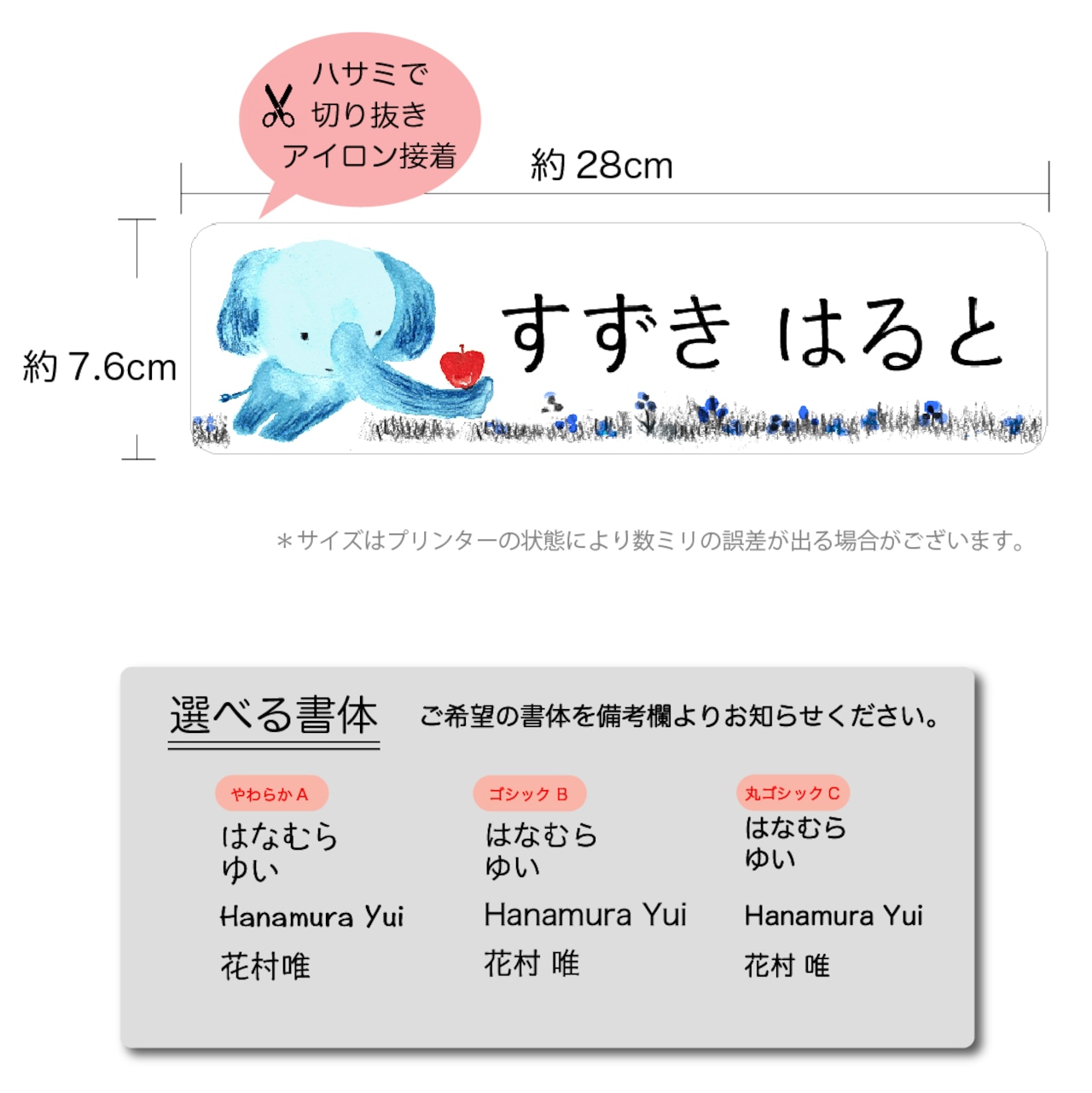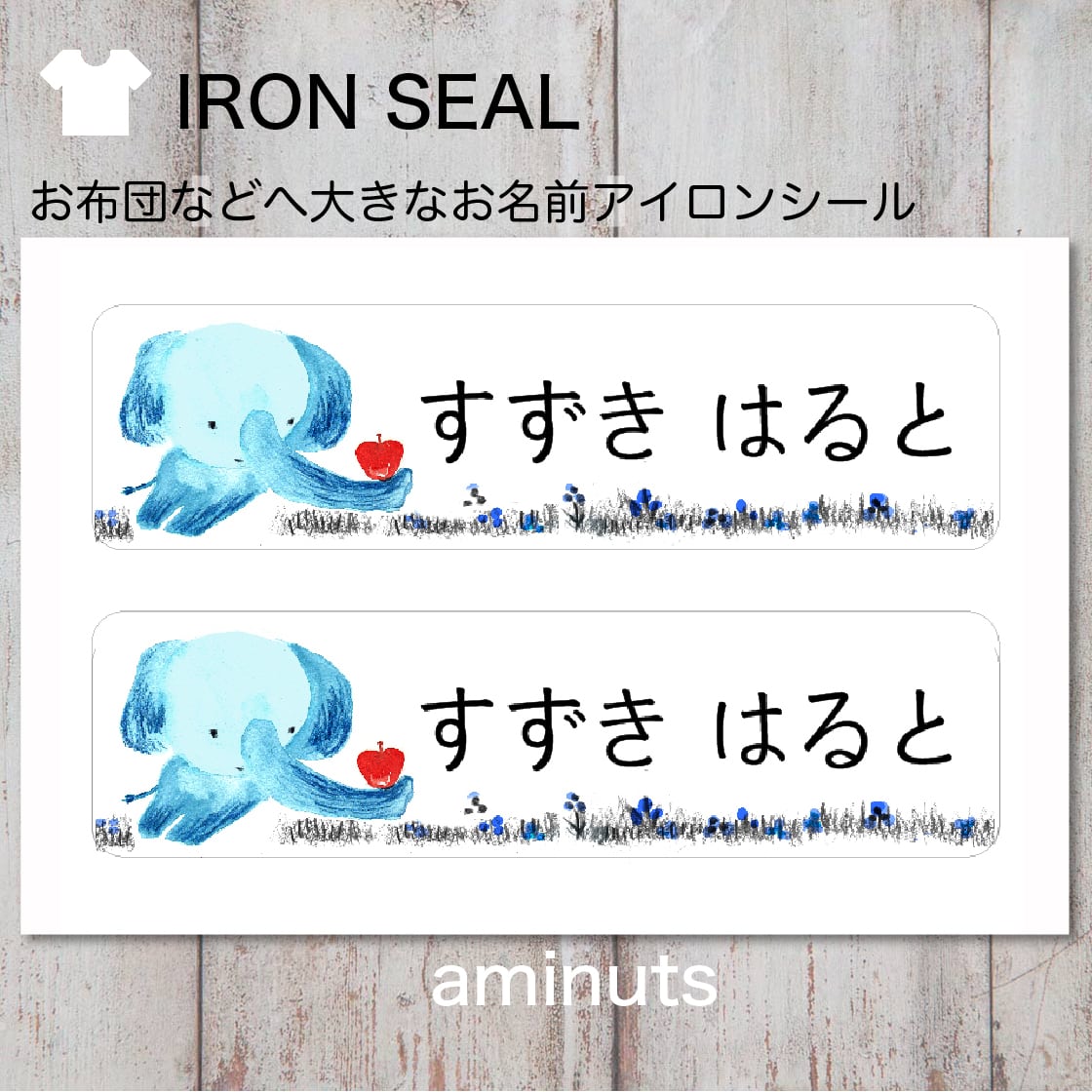 お昼寝布団用 とっても大きなお名前シール(アイロンタイプ)2枚分/ぞう