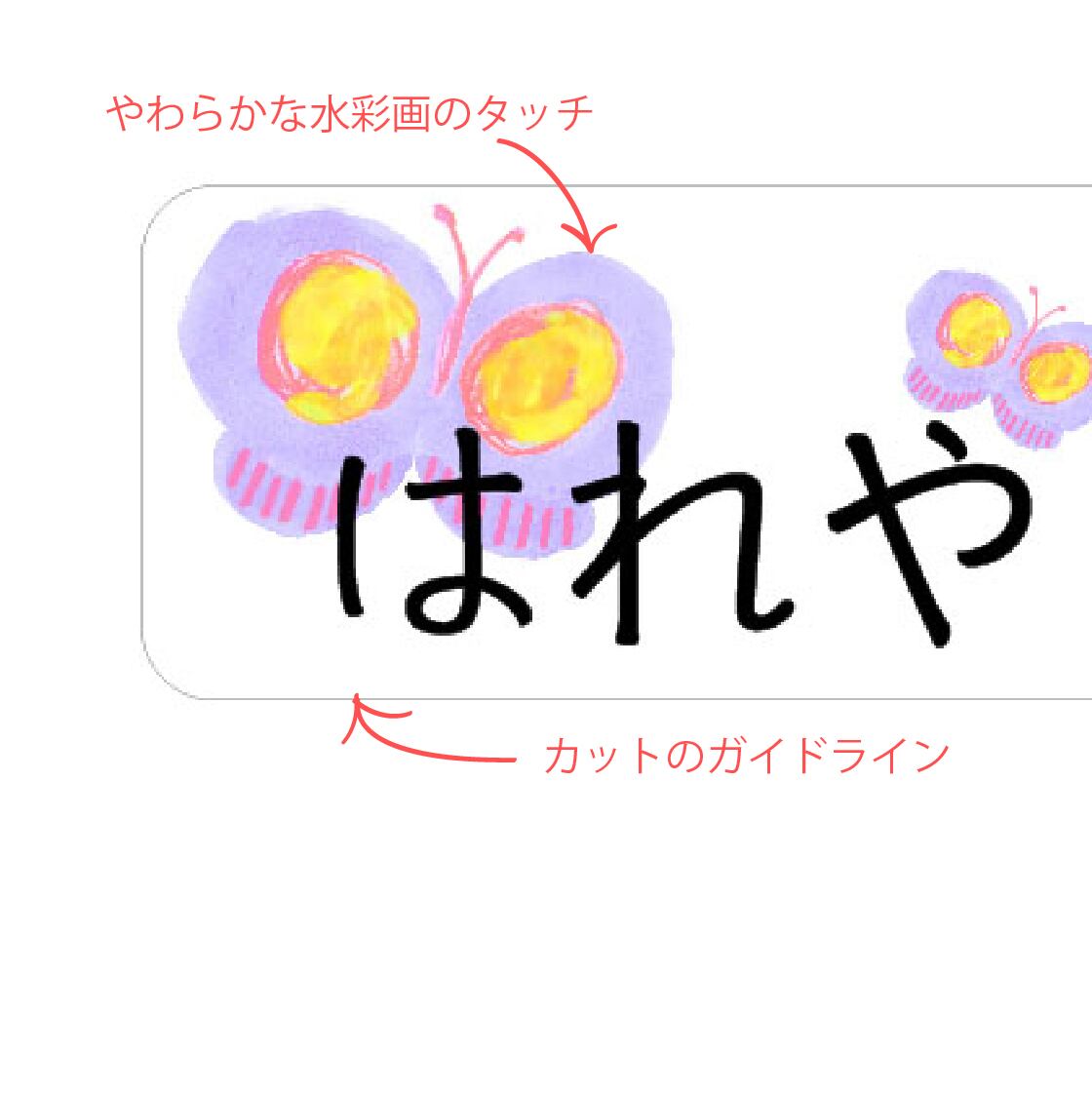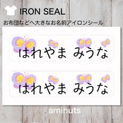 お昼寝布団用 とっても大きなお名前シール(アイロンタイプ)2枚分/ちょうちょpurple
