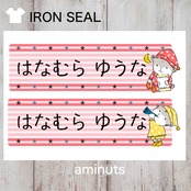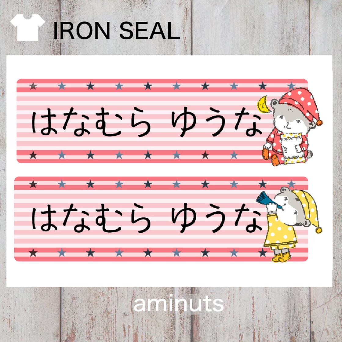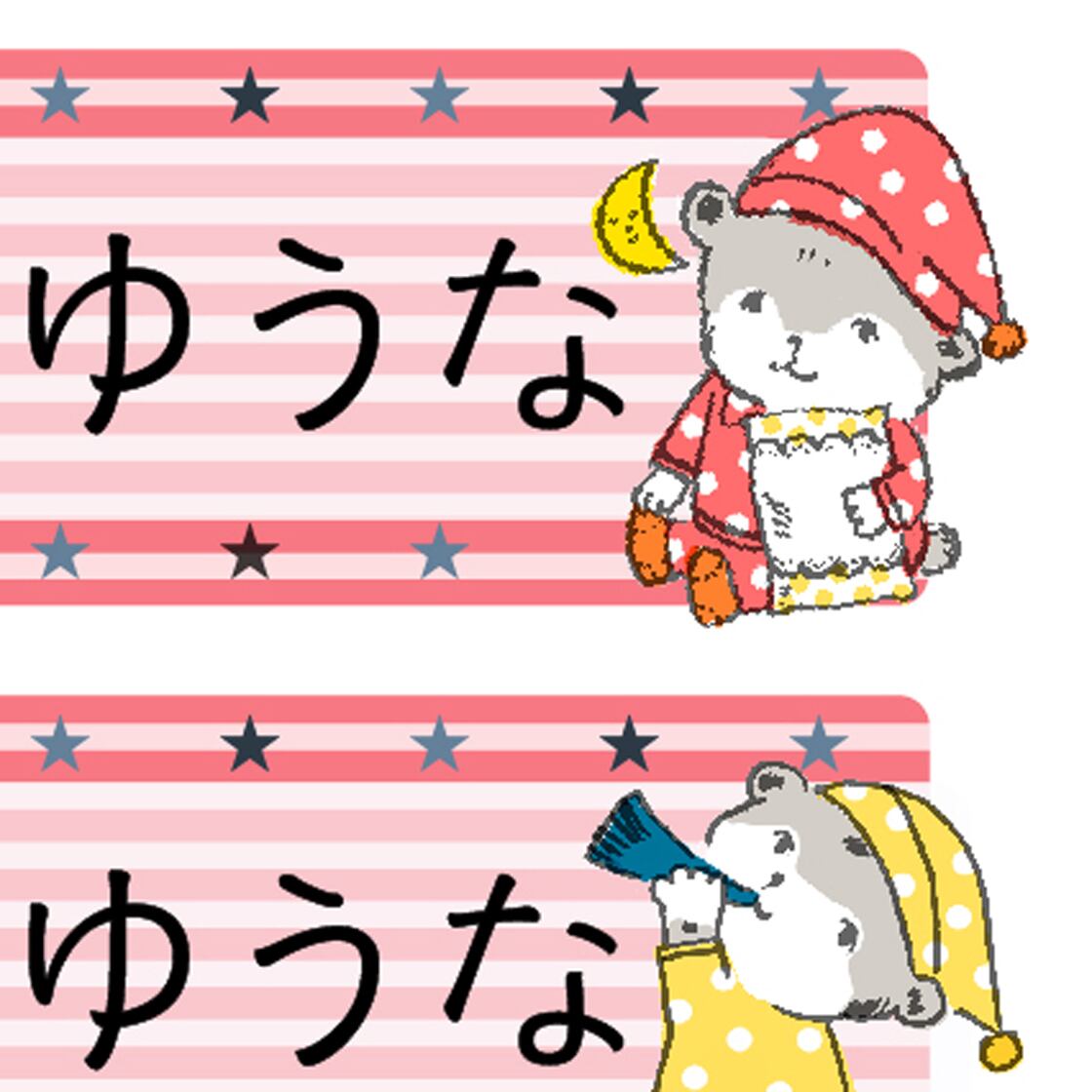 お昼寝布団用 とっても大きなお名前シール(アイロンタイプ)2枚分/くまPinkストライプ*ワイド