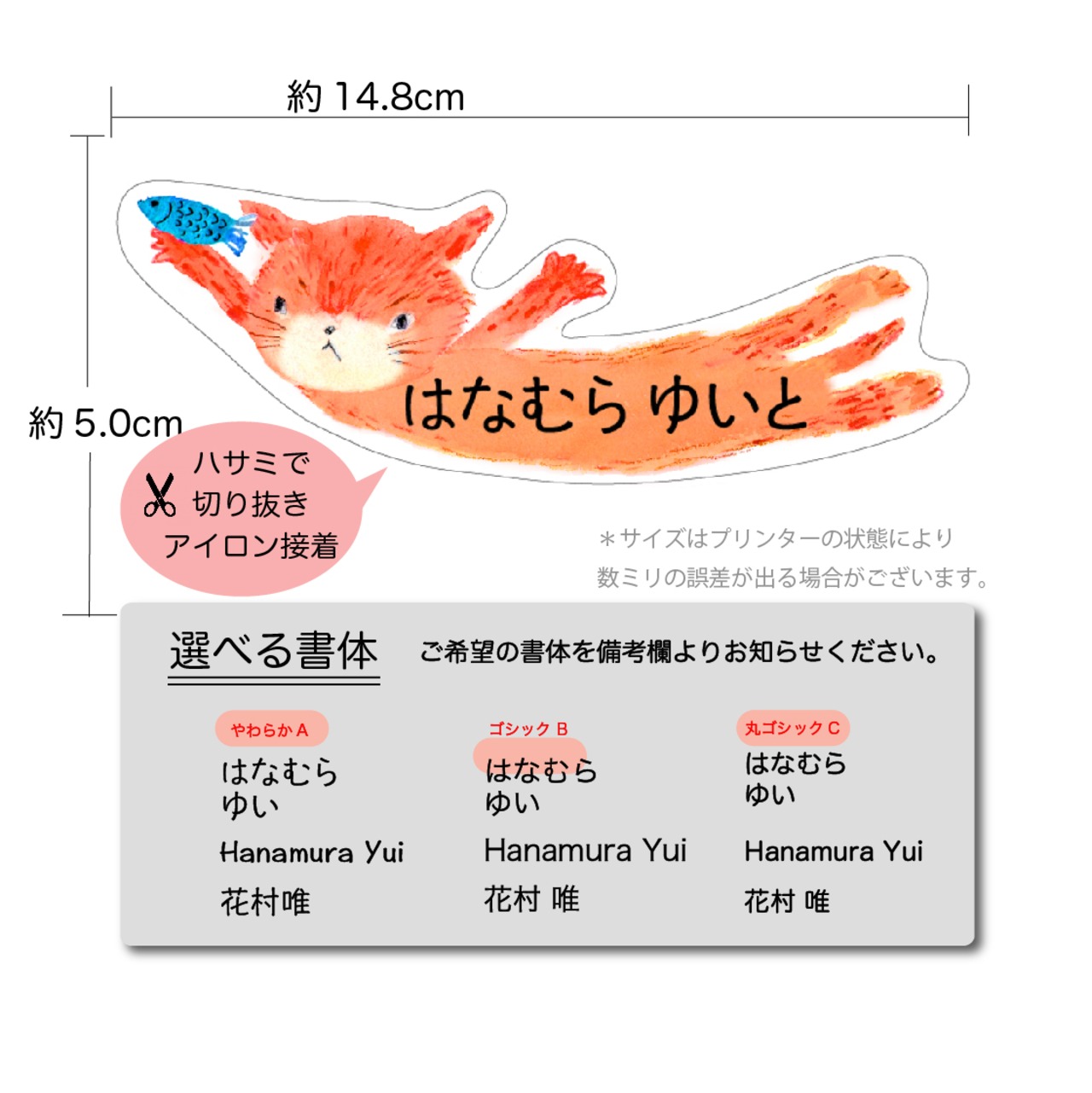 お昼寝布団用 とっても大きなお名前シール(アイロンタイプ)6枚分/ネコ
