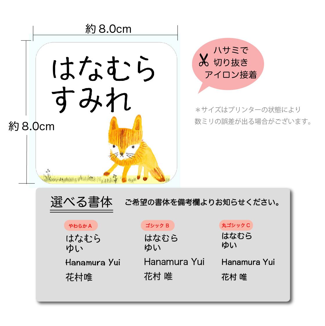 お昼寝布団用 とっても大きなお名前シール(アイロンタイプ)6枚分/きつね