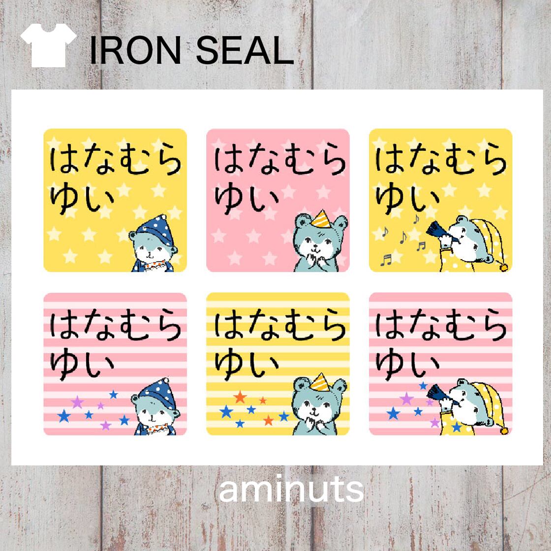 お昼寝布団用 とっても大きなお名前シール(アイロンタイプ)6枚分/くまPINK