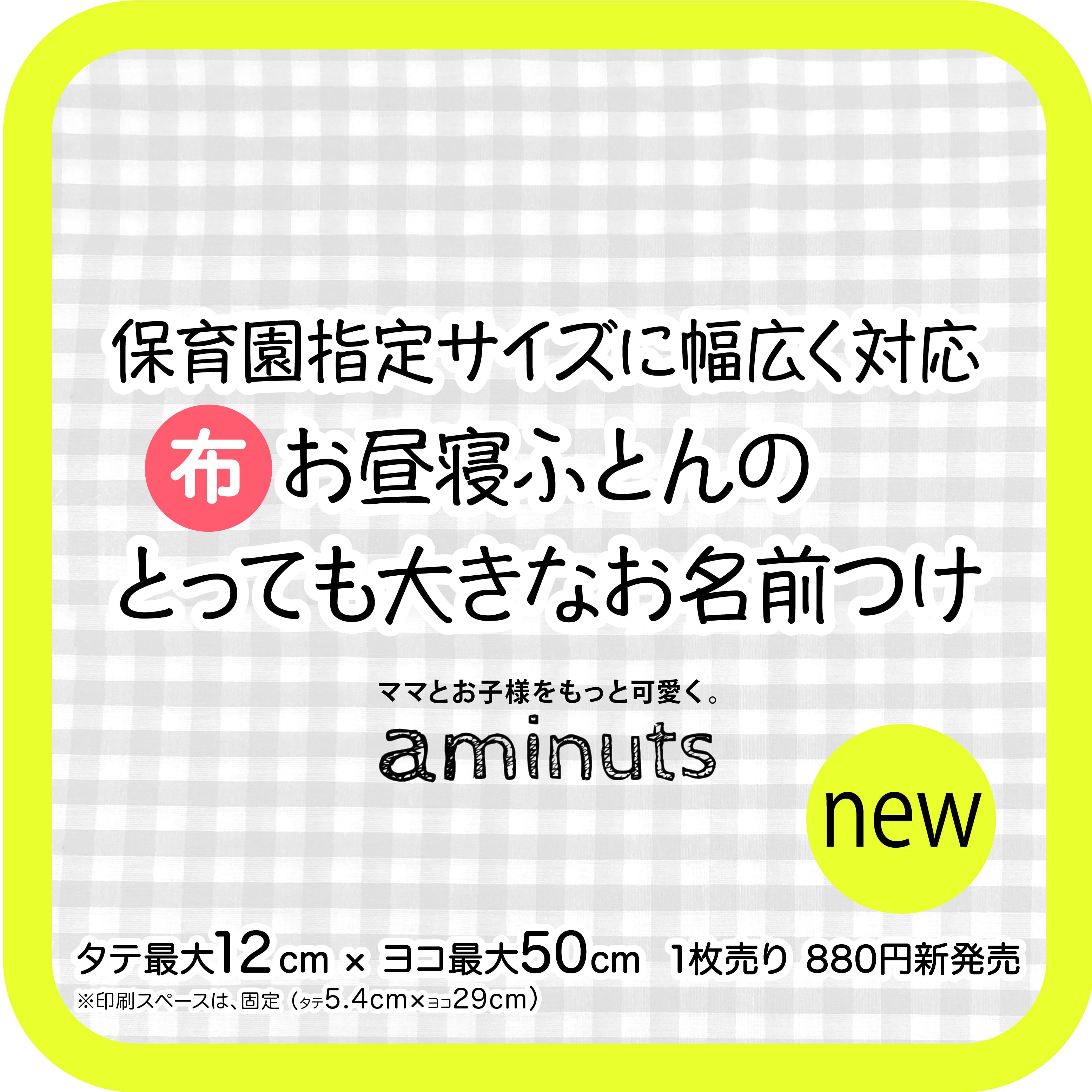 お昼寝布団や、お布団バッグなど、特大のお名前つけにお役立てください。
