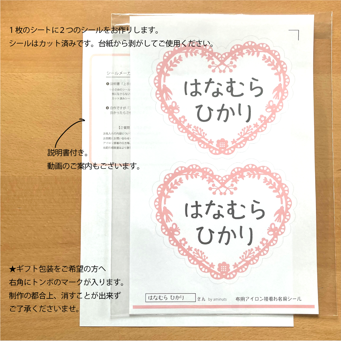 アイロン接着で縫い付けも不要。説明書(作り方動画案内付き)ですぐに完成します。