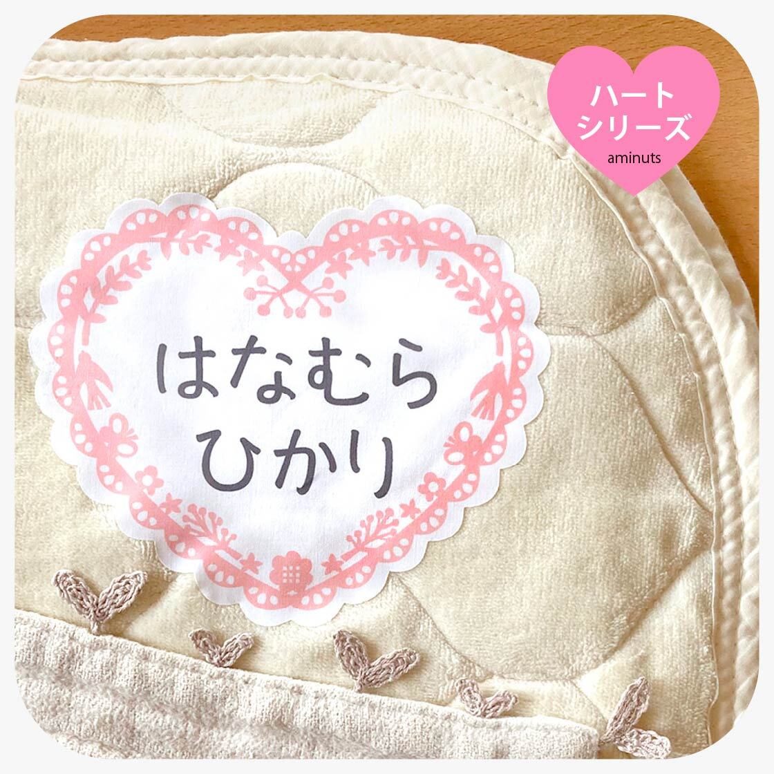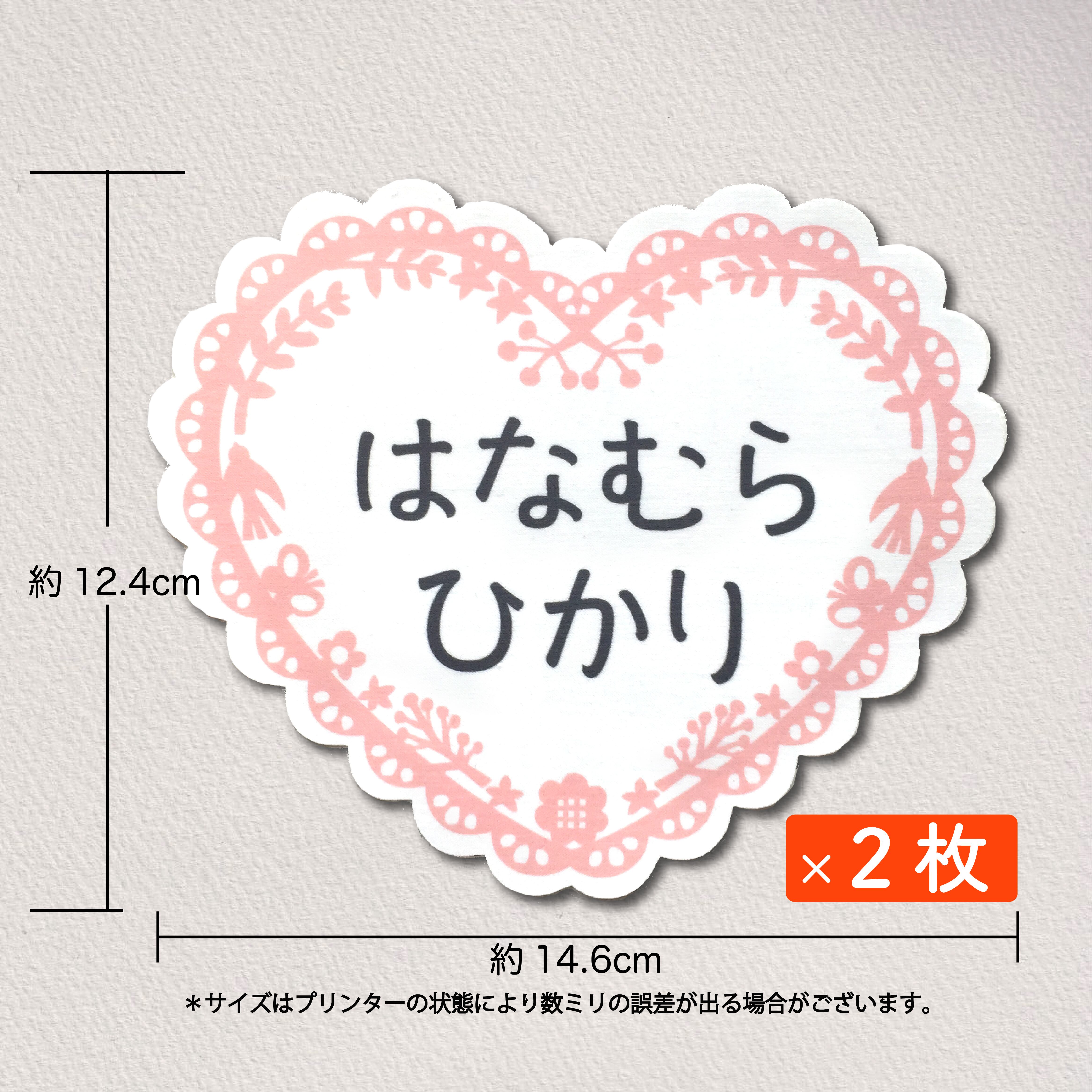 お昼寝布団用 とっても大きなお名前シール(アイロンタイプ)2枚分/ハートPink