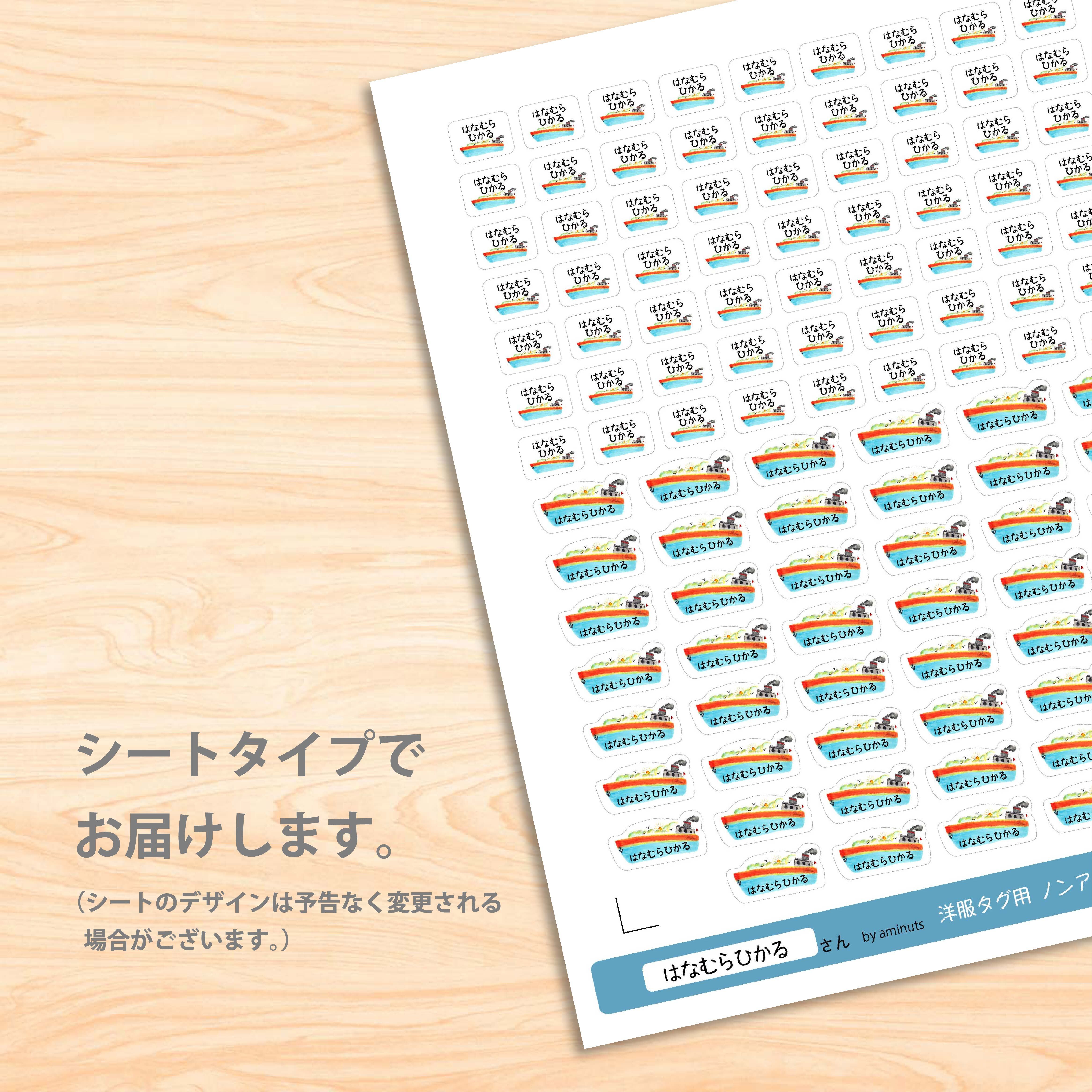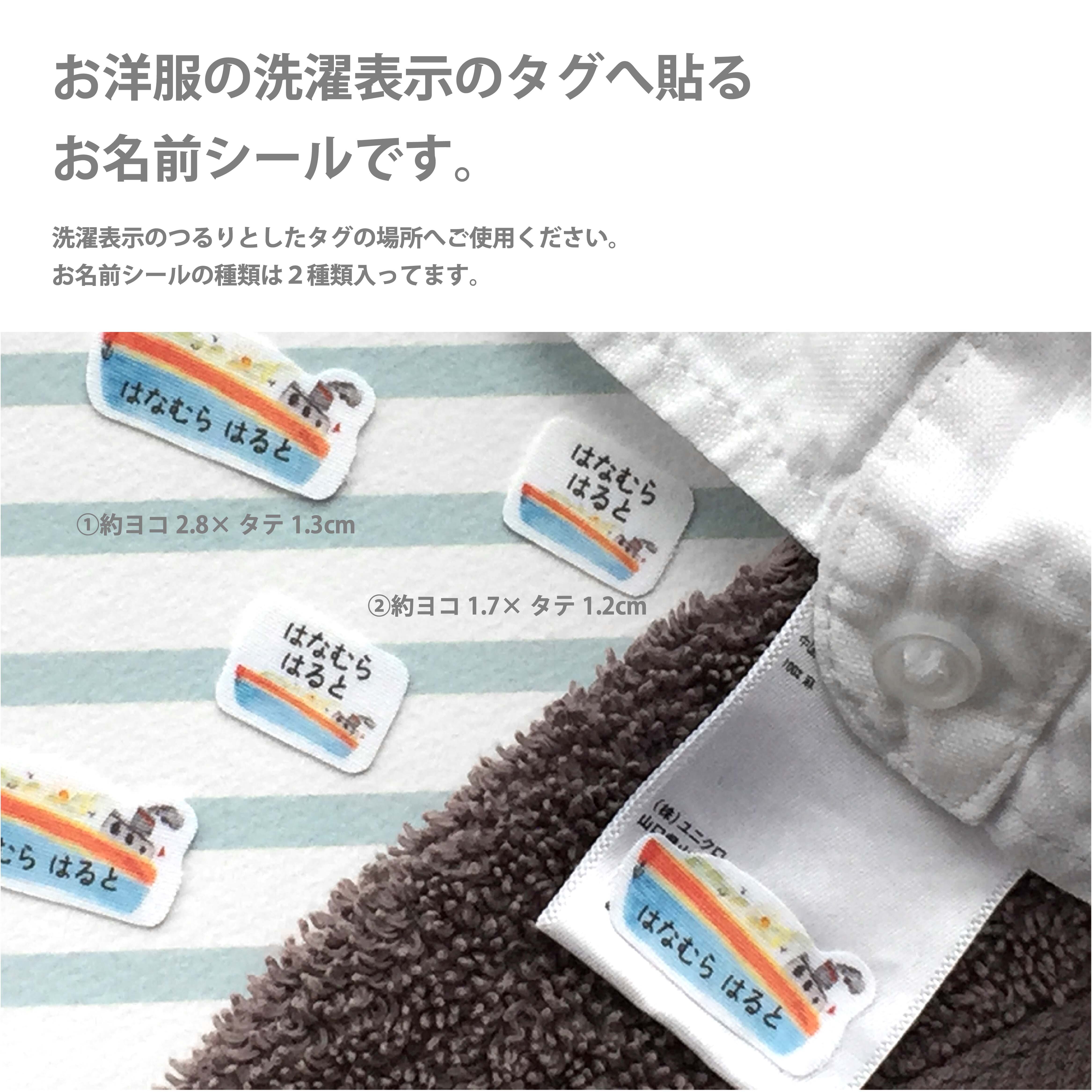 お洋服のタグ(洗濯表示などが印刷されたつるりとした生地)に貼ってご使用いただくと繰り返しお洗濯もできる便利なお名前シールです。