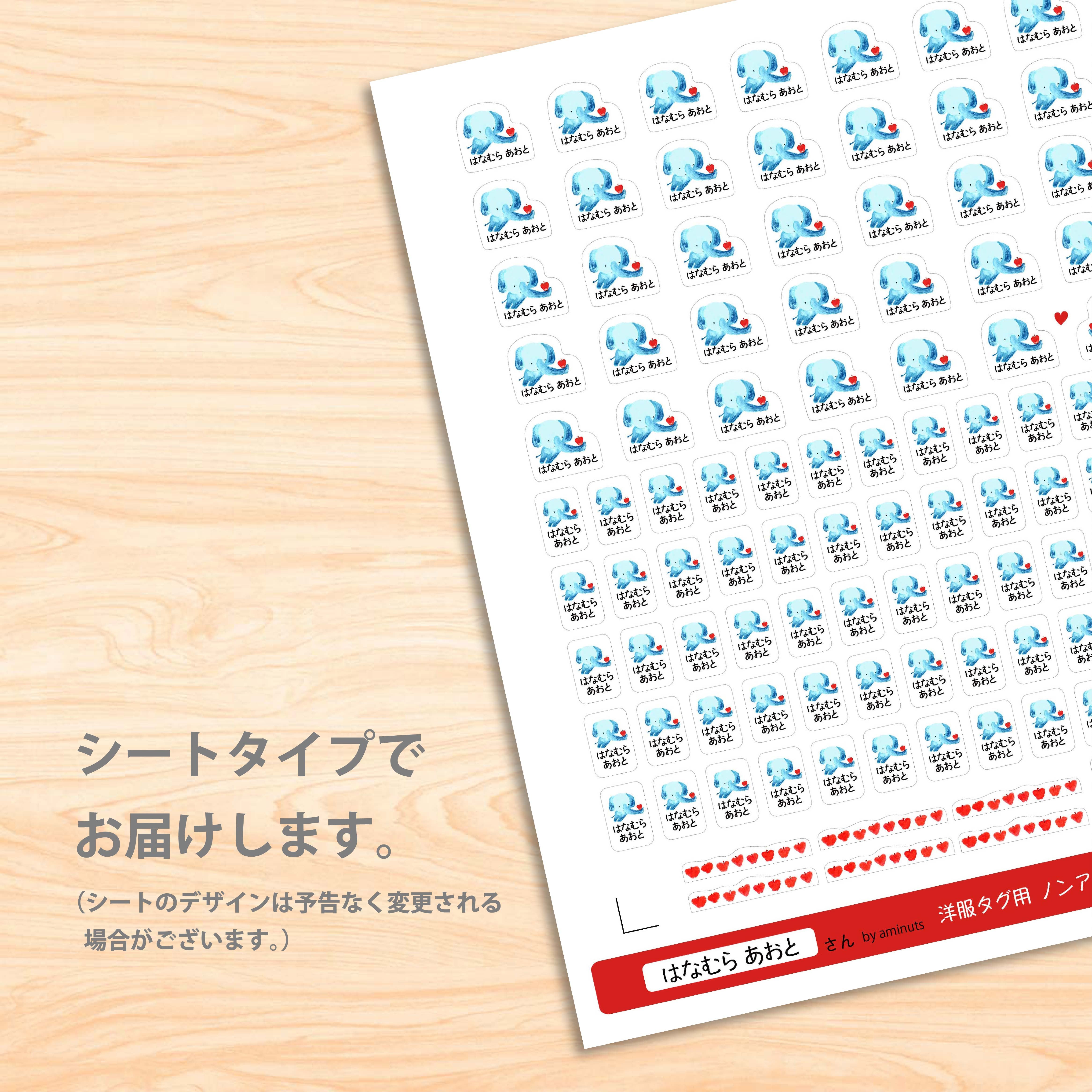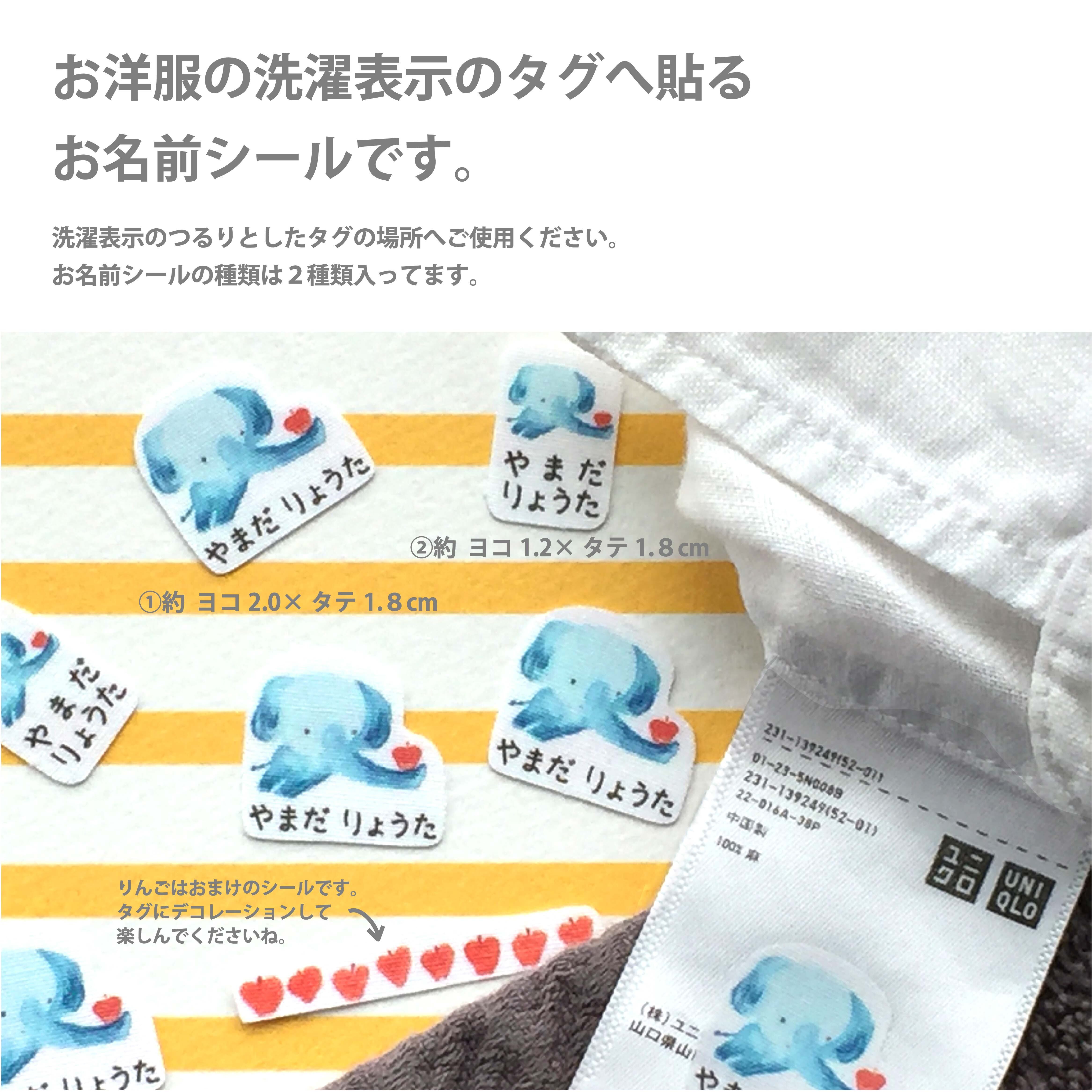 【こども服にすぐ使える おなまえシール】洋服タグ用 ノンアイロン お名前シール ゾウ(ぞう)