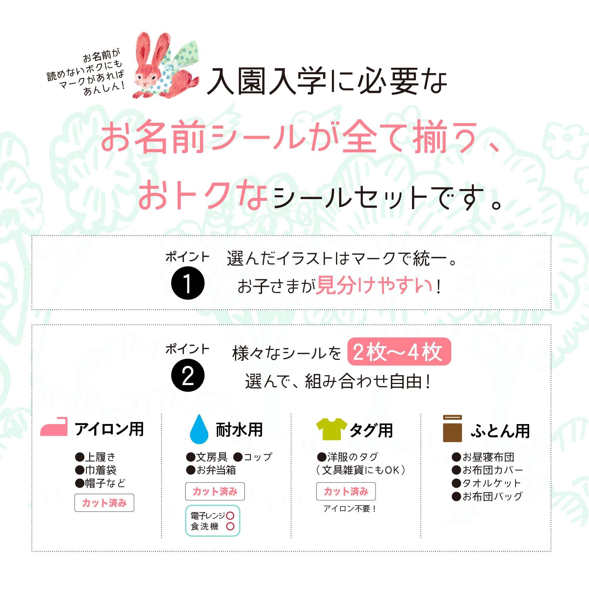 人気のイラスト 「お名前シールセット」入園入学準備に!(洋服タグ用・耐水シール・アイロンシール・お昼寝布団用)