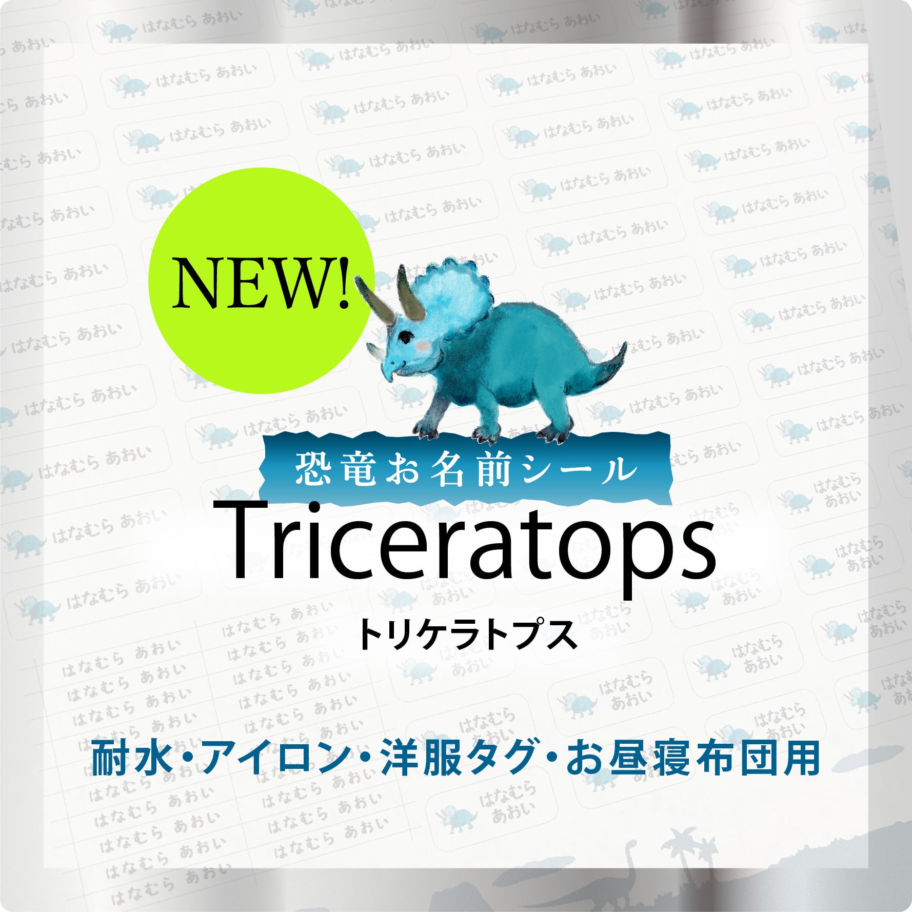 恐竜お名前シール トリケラトプス(耐水・洋服タグ・アイロン・お昼寝布団用)